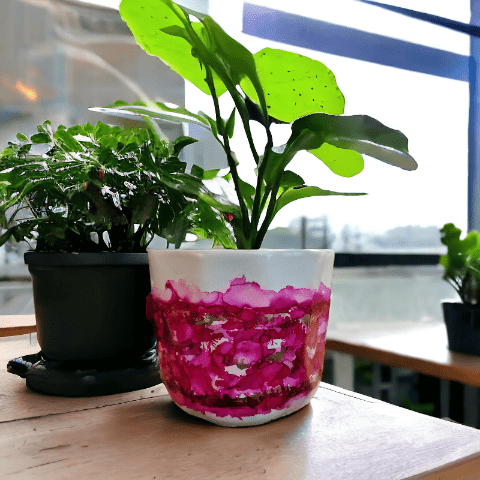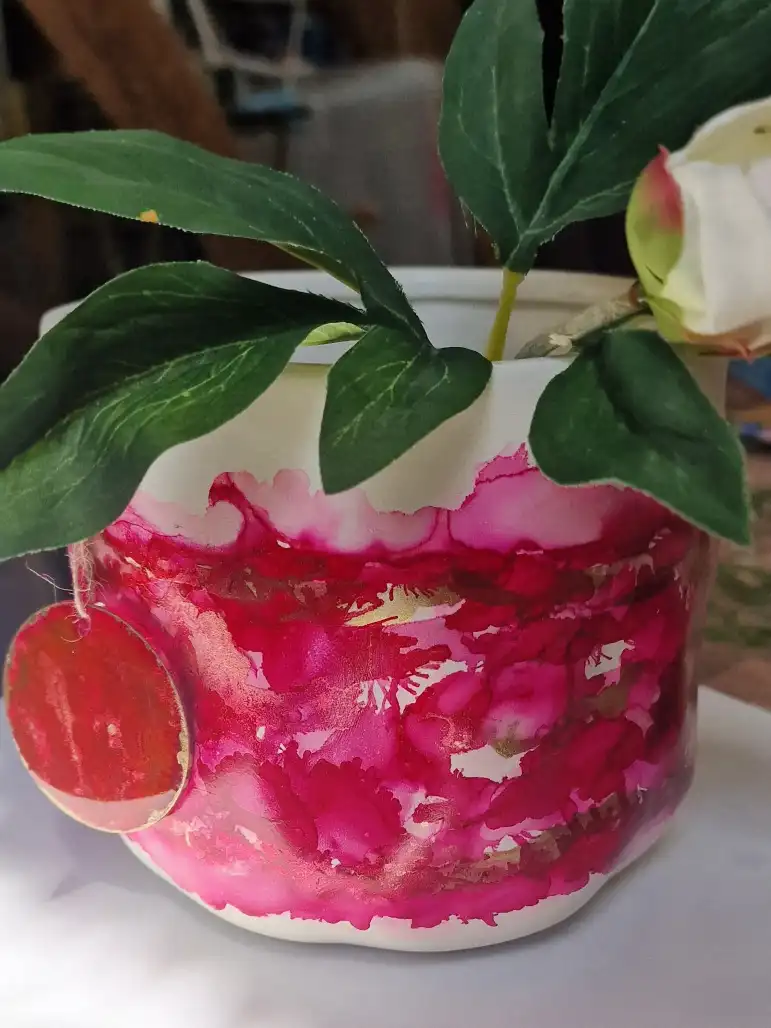 Met liefde voor jou gemaakt: Handbeschilderd Keramieken Bloempot /Alcoholinkt – rose