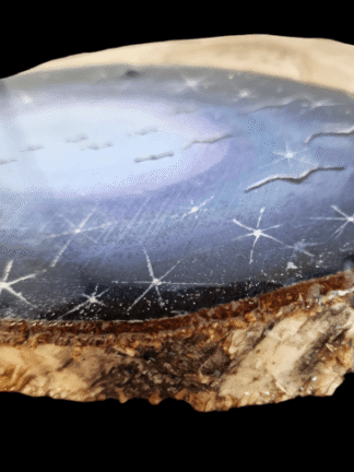 Deze unieke decoratieve hanger schilderij is met zorg met de hand gemaakt op een houten schijf van ongeveer H 15 cm L 26 cm en circa 2 cm dik. De hout is afkomstig uit mijn eigen tuin en door mijzelf gezaagd en voorbereid – een persoonlijk en extra milieuvriendelijk alternatief voor industrieel hout.