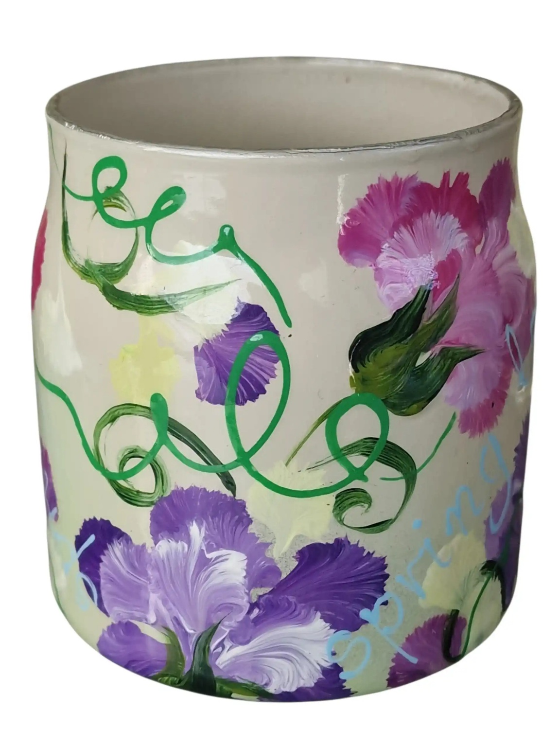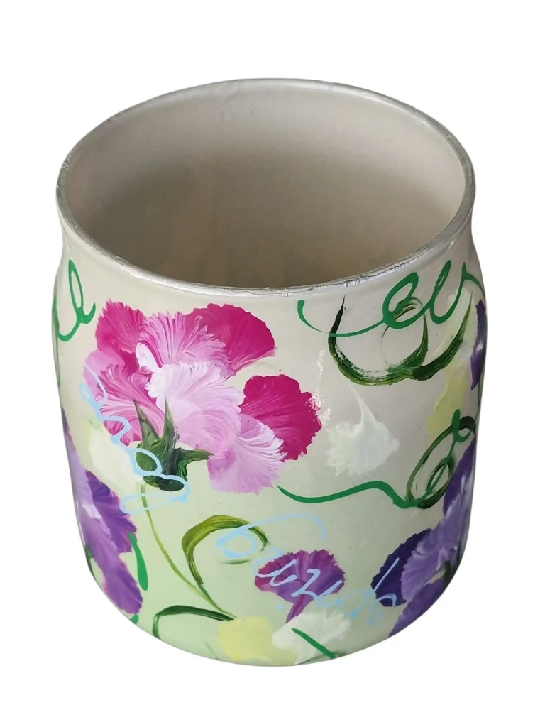 Met aandacht en precisie heb ik het glas bewerkt en met de hand beschilderd. Elke penseelstreek draagt bij aan een nieuw verhaal. Op het vaasje staat een vrolijke lente compositie die direct een warm en licht gevoel oproept. Denk aan kleur, beweging en de energie van de lente gevangen in glas.