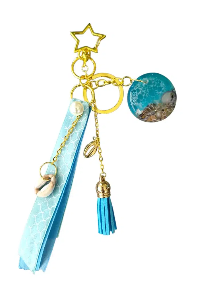 Handgemaakte Resin Sleutelhanger met Zand en Schelpen – Tashanger