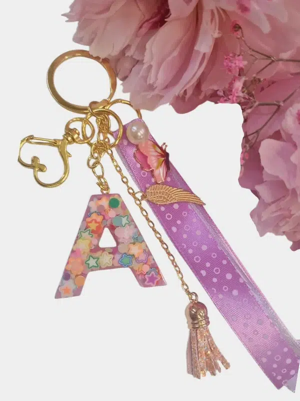 De Zoete Letters van IzArtShop zijn kleurrijke en persoonlijke resin sleutelhangers en tashangers, handgemaakt in de vorm van een letter. Elke hanger is uniek en wordt gegoten in resin, versierd met linten en bedels, en afgewerkt met een stevig roestvrijstalen sleutelhangsysteem.
